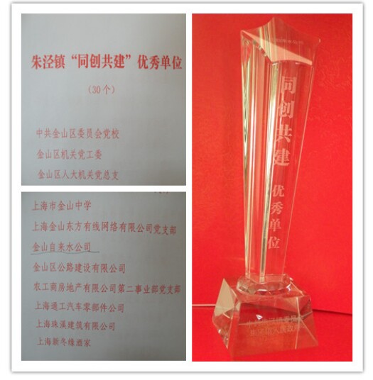 近日,公司被评为朱泾镇2012年度同创共建优秀单位。
