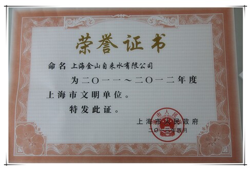 通过全体干部职工的共同努力,公司成功创建2011-2012年度上海市文明单位,同时成功创建2011-2012年度金山区文明单位。在创建市级文明单位中,公司把创建工作与中心工作紧密结合,强化组织领导,加大创建投入,落实有效措施,创新实践载体,有力地促进了公司“三个文明”建设的协调发展。