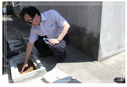 在现场,公司经理奚龙飞认真听取了用户对供水管网改造工作成效的反馈,并详细查看了水表和表箱的安装情况,就水表位置、表箱内粉饰以及覆沙厚度等具体环节的施工重点和要求作了进一步强调。同时,检查组对各标段的隐蔽工程以及表箱的用料选材进行了抽查,对不符合技术标准的表箱要求整改。