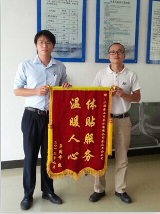 9月9日下午,金山卫镇横召村一组村民吴国锋向金山卫分公司送来“体贴服务,温暖人心”的锦旗,感谢分公司及时发现漏水,减少不必要的经济损失。