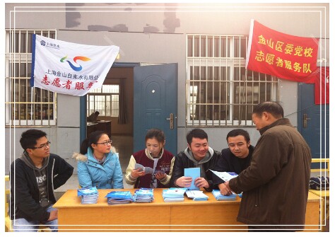 12月5日是第28个国际志愿者日,为深入贯彻党的十八届三中全会精神,在全社会倡导志愿服务精神,传播志愿服务理念,金山供水志愿者服务队深入朱泾镇大茫村开展志愿者日服务专项活动。