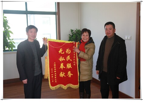 近日,上海殷润物业有限公司向我公司送来了一面“为民服务,无私奉献”的锦旗,对朱泾分公司帮助解决二次供水方面的技术难题表示衷心感谢。
