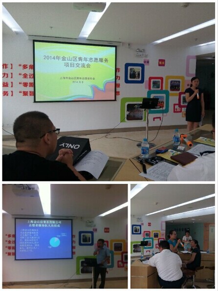 8月8日,金山供水志愿者服务队携入围项目参加了由团区委、区青年志愿者协会联合召开的金山区2014年青年志愿服务项目交流会。会上,公司团支部书记许旭康把 “公共服务进社区”志愿服务项目向大会作了汇报交流,并就公司志愿者服务队的人员组成以及近几年中开展的各类志愿者活动内容和取得的一些成绩向大会作了介绍,同时对项目开展过程中遇到的困难与不足请求予以帮助与指导。