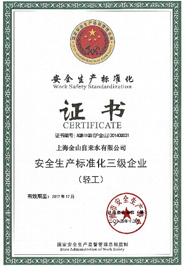 近日,上海金山自来水有限公司经第三方检验评审,成功创建“安全生产标准化三级企业(轻工)”。
