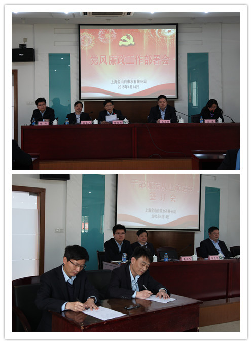 为进一步筑牢廉政思想防线,落实党风廉政建设责任,日前,金山自来水公司召开党风廉政建设工作部署会,公司党政班子成员、各部门负责人等33人依次签订了《干部廉洁从业承诺书》。会议由公司党总支副书记沈莲主持。