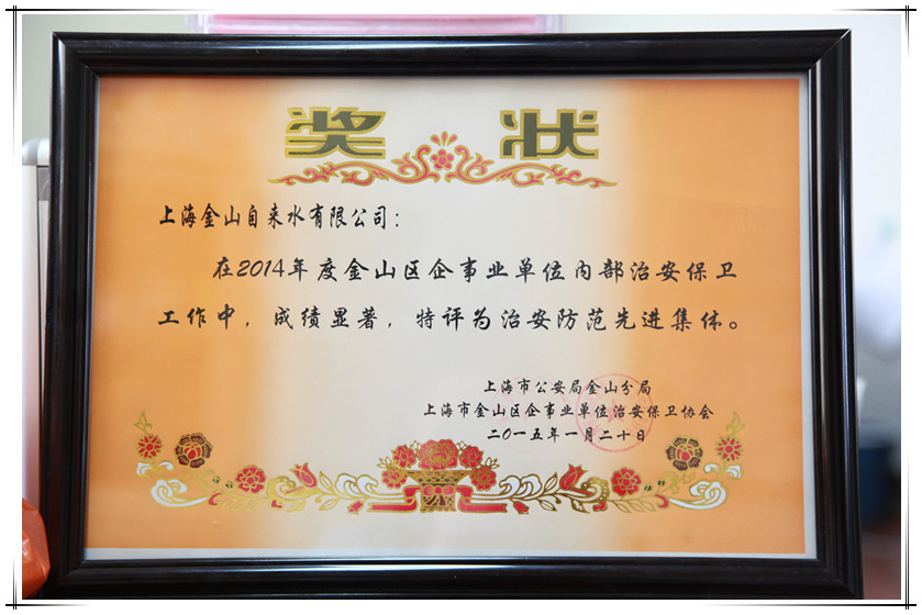 近日,公司被评为“2014年度金山区企事业单位治安防范先进集体”称号。
