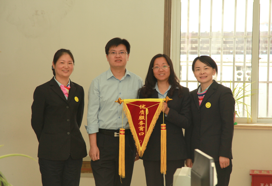 近日,朱泾营业厅获得公司2015年第三季度“优质服务窗口”称号。10月27日,公司副总经理陆扬前往朱泾向营业厅授予了“优质服务窗口”流动红旗。