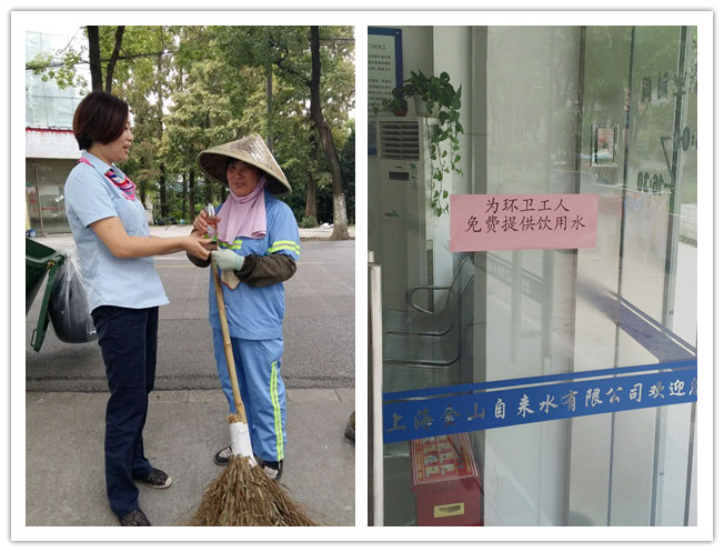 炎炎烈日下,环卫工人们始终坚守在保洁岗位上,为城市洁净辛勤劳作。考虑到室外作业的环卫工人尤为辛苦,夏季工作远离取水设施,金山自来水公司张堰分公司主动给路过的环卫工人添水,为奋战在一线的环卫工人送去夏日清凉。