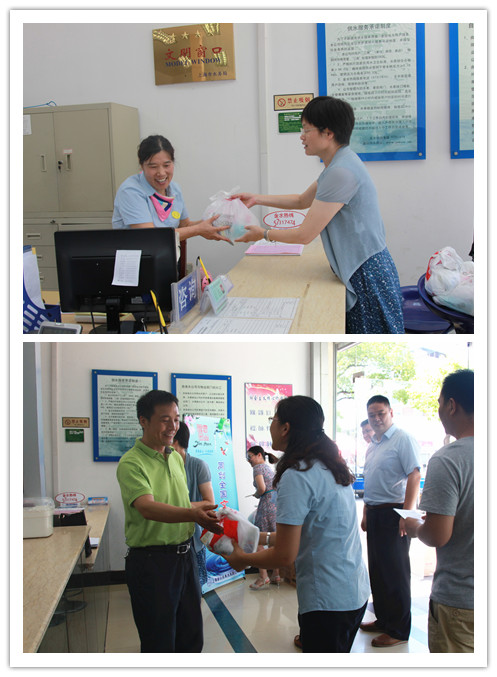 在朱泾营业厅窗口,蔡雷英亲切询问供水一线职工的生活及工作状况,对坚守岗位的职工战高温、保供水,默默无闻地辛勤劳动表示感谢,并叮嘱外线工作人员做好防暑降温措施。慰问组对窗口“为环卫工人免费提供饮用水和休息点”的服务举措表示赞赏,希望不断提高服务水平和服务质量,树立良好供水窗口单位形象,确保安全、优质供水。
