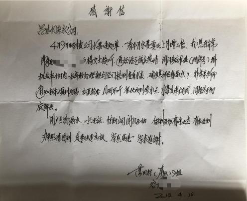 正如用户感谢信中提的那样,哪怕用户点滴漏水,一个电话我们就能得到及时响应,竭尽所能为用户供好每一滴水。