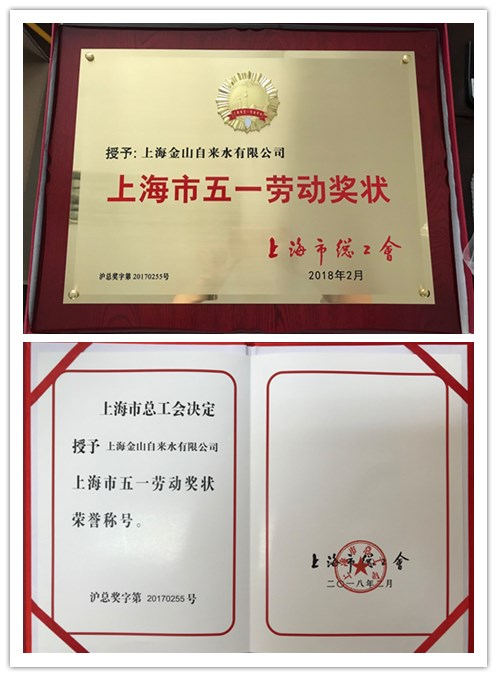 金山自来水公司在二次供水设施改造工作中表现突出,近日被授予“上海市五一劳动奖状”、2017年度上海市水务局重点工程实事立功竞赛先进集体以及“保障优质供水,改造二次设施”专项劳动竞赛先锋标杆荣誉称号。