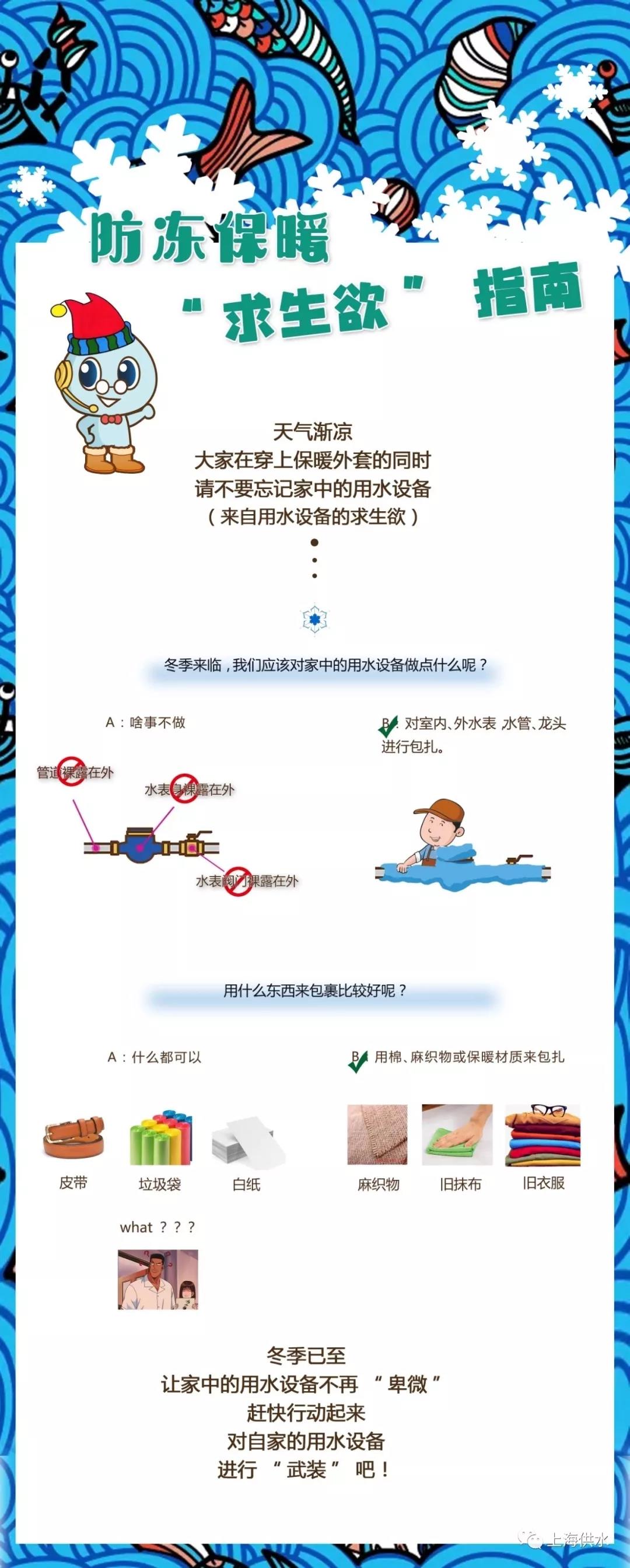 根据气象预报,近期最低温度预计在0℃上下,寒冷的天气容易使自来水设施发生冻裂。为确保您的用水畅通,敬请大家做好用水设备的防冻保暖工作。