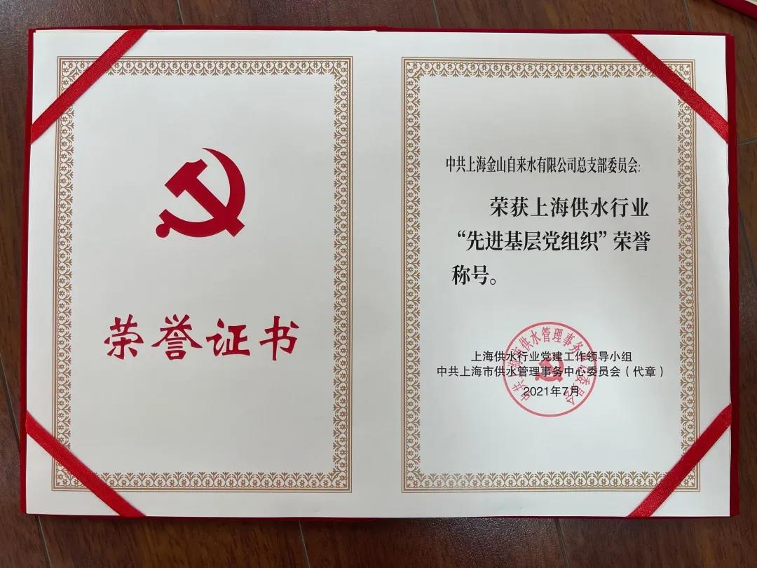 ▲公司党总支荣获上海供水行业“先进基层党组织”荣誉称号。