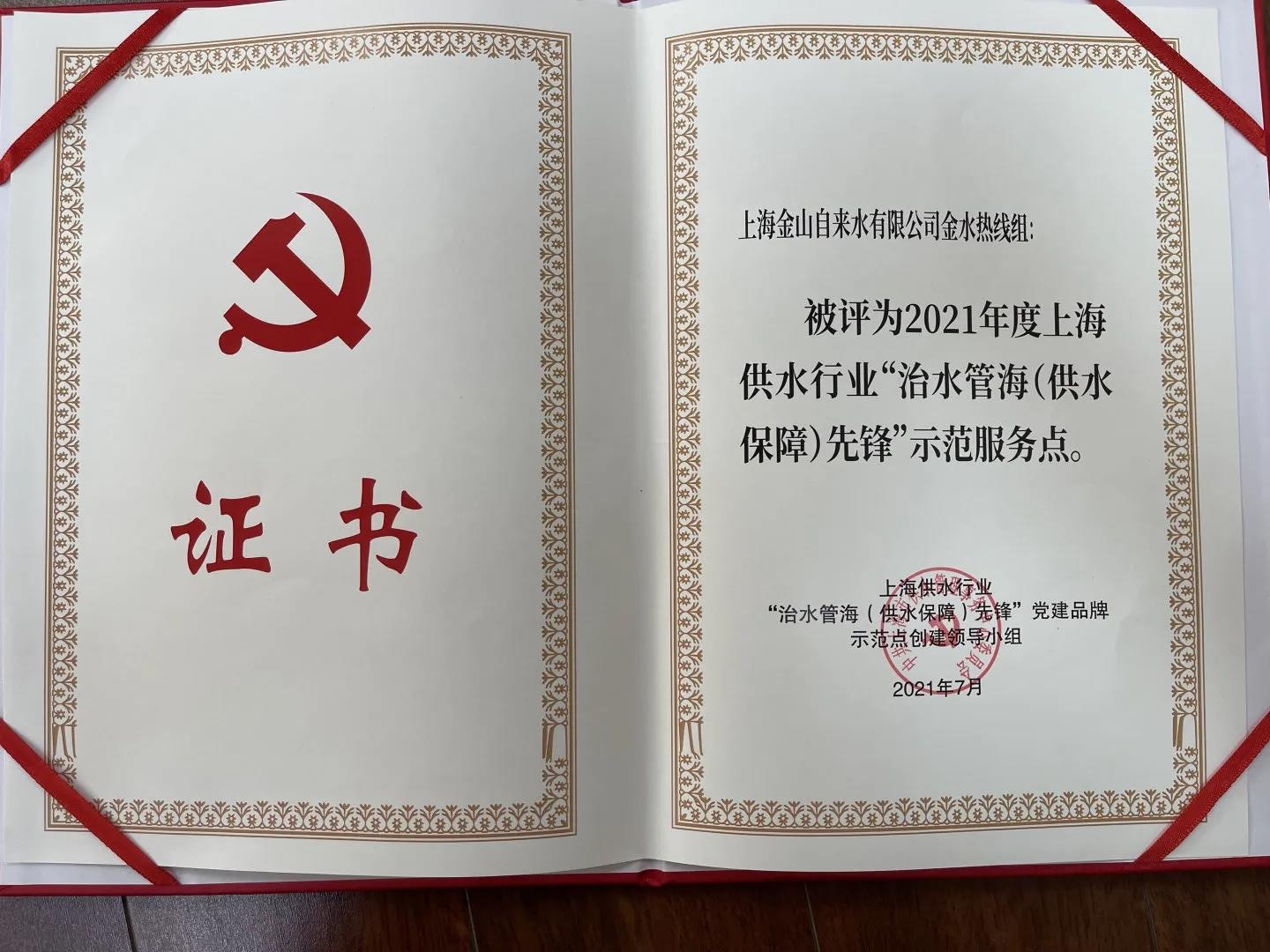 ▲公司金水热线组被评为2021年度上海水务海洋系统“治水管海(供水保障)先锋”示范服务点。