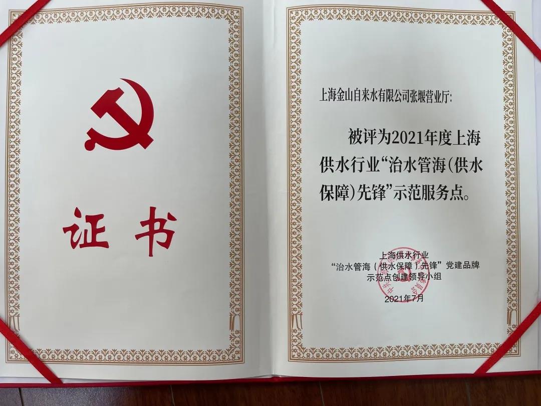 ▲公司张堰营业厅被评为2021年度上海供水行业“治水管海(供水保障)先锋”示范服务点。