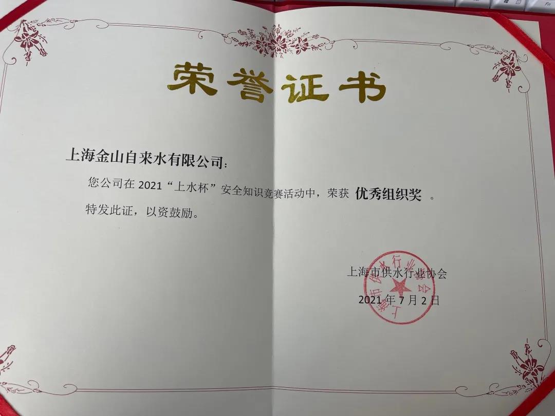 ▲公司在2021“上水杯”安全知识竞赛活动中,荣获优秀组织奖。