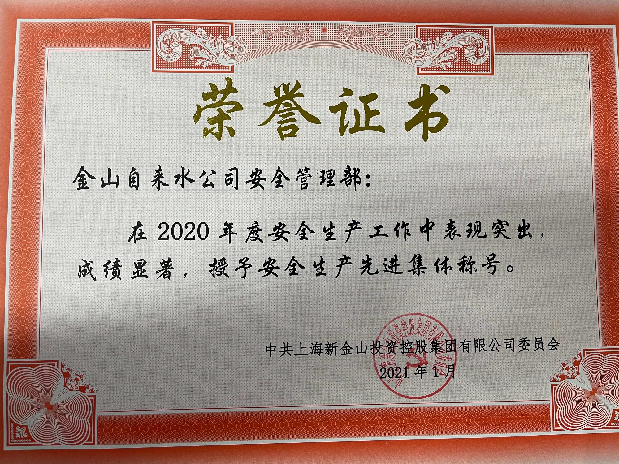 ▲公司安全管理部在2020年度安全生产工作中表现突出,荣获上海新金山投资控股集团“安全生产先进集体”称号。