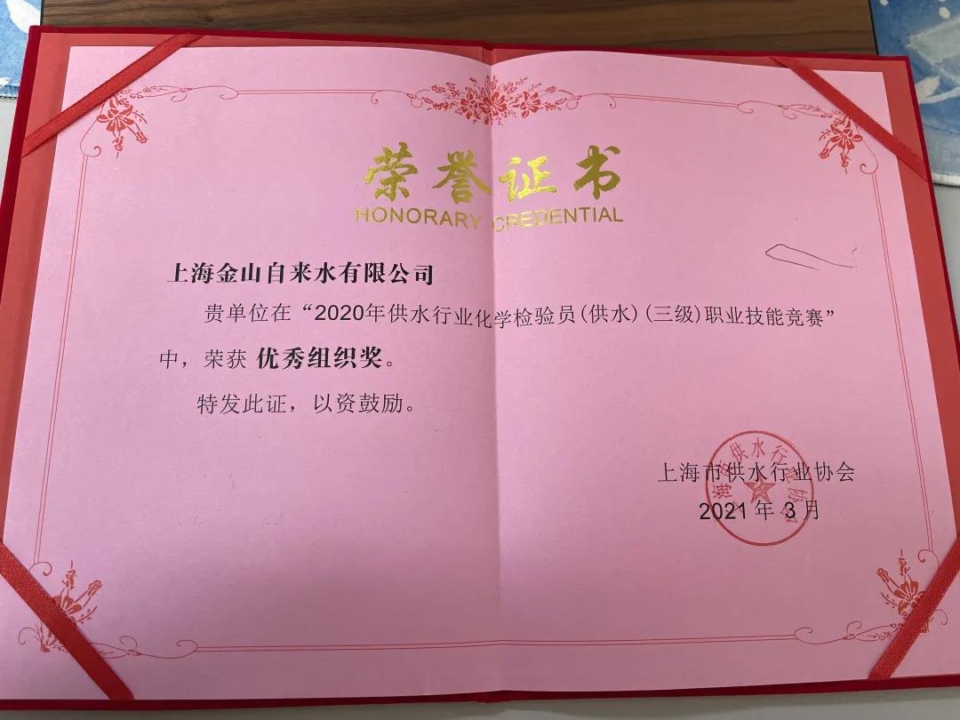 ▲公司荣获“2020年供水行业化学检验员(供水)(三级)职业技能竞赛”优秀组织奖。