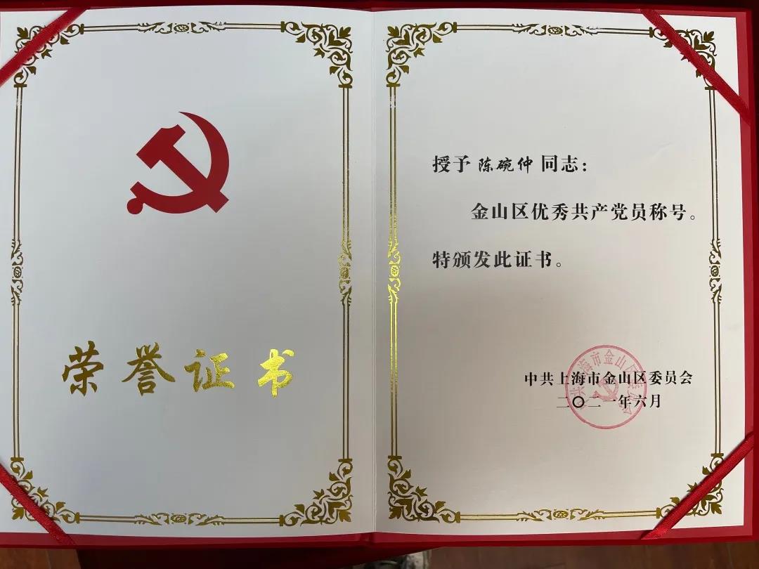 ▲公司党总支书记、副总经理陈碗仲荣获上海供水行业“优秀党务工作者”、金山区优秀共产党员称号。