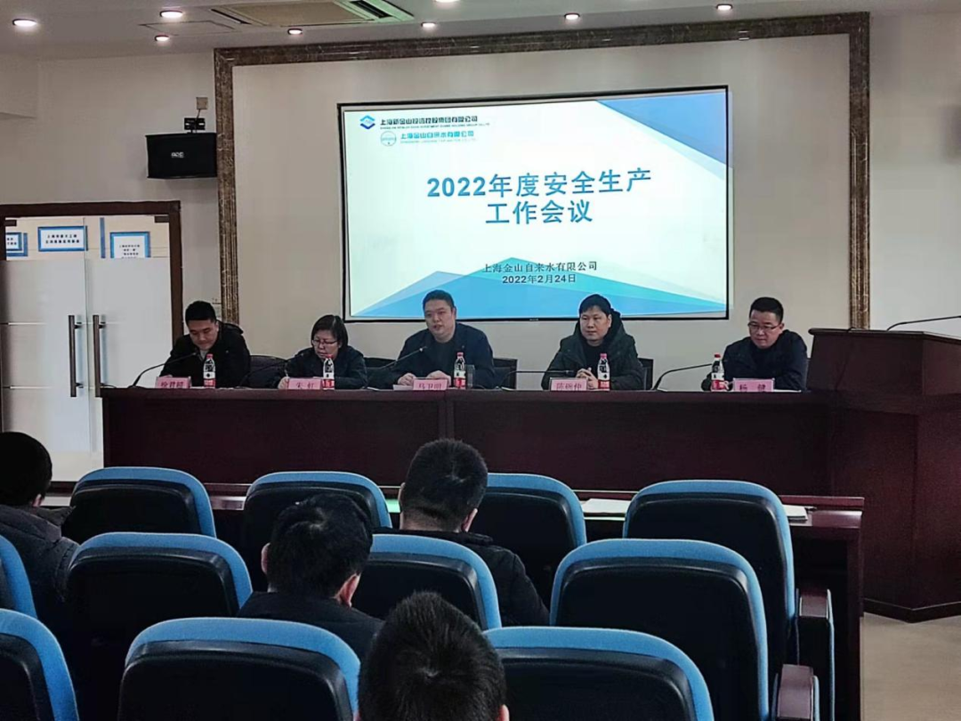2月24日下午,上海金山自来水有限公司在公司多功能厅召开2022年度安全生产工作大会。公司党政班子成员及全体中层干部共44人参加会议。会议由公司党总支委员、副总经理徐君超主持。会上,徐君超就2021年安全生产工作做了回顾总结,并对2022年度安全生产工作制定目标:一是围绕安全生产做到“六零”安全生产目标,二是进一步完善全员安全生产责任制,三是建立健全隐患排查制度,加大隐患排查整治力度,四是强化安全生产应急管理,提高突发事件应对能力,五是深入推进安全文化建设,营造安全生产良好氛围,全力做好2022年度供水安全生产保障工作。