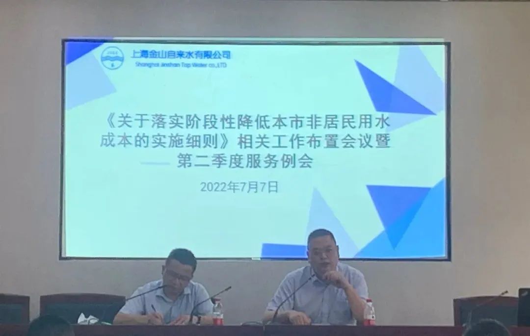为贯彻落实《上海市水务局关于落实阶段性降低本市非居民用水成本措施的通知》的要求,7月7日下午,上海金山自来水公司召开《关于落实阶段性降低非居民用水成本的实施细则》相关工作布置会议暨第二季度服务例会。公司总经理马卫明、副总经理杨健、各相关职能部门负责人、各分公司经理及等相关人员出席本次会议,会议由杨健主持。
