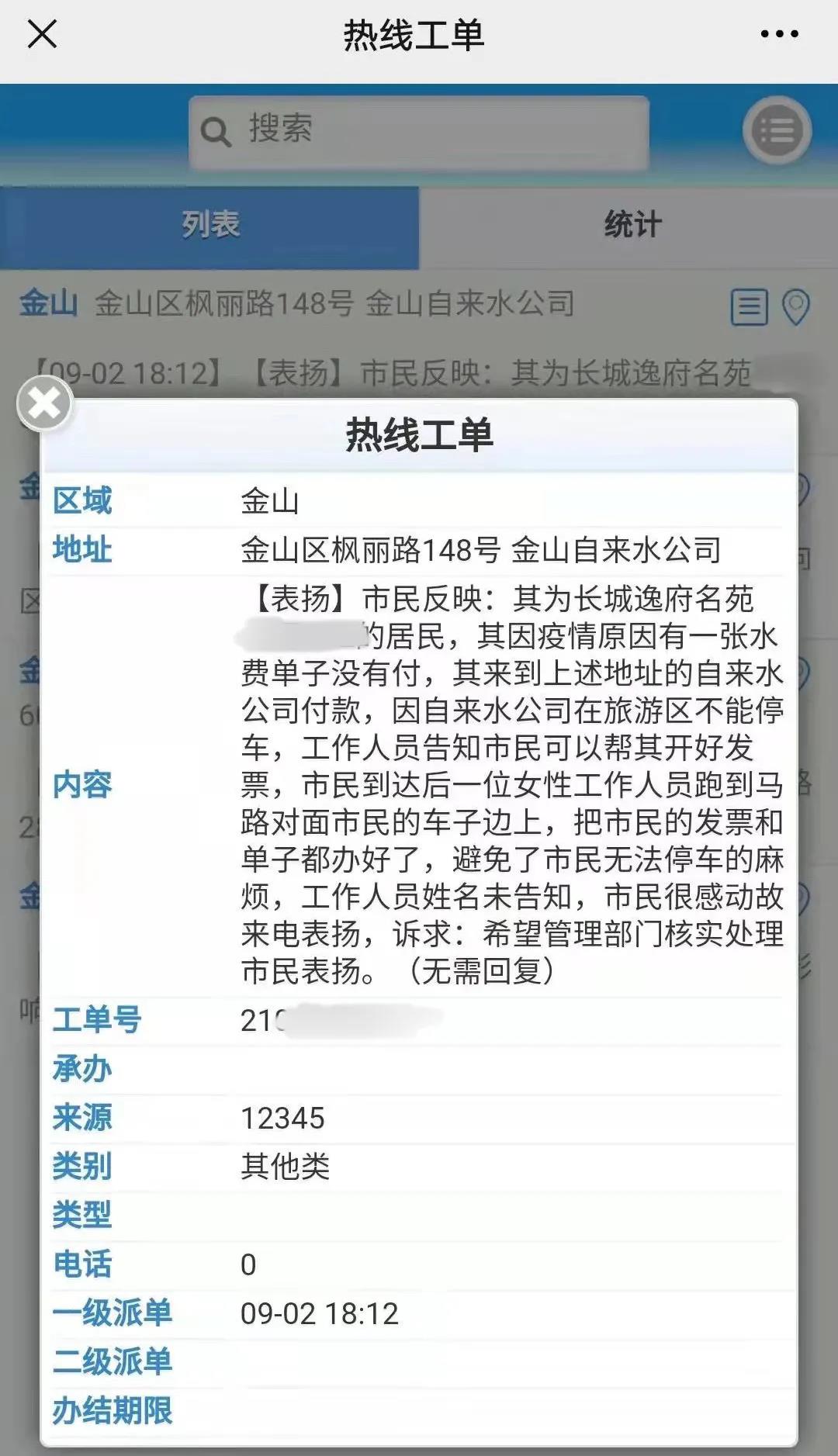 9月2日,公司收到一件特殊的“12345”热线工单。家住长城逸府名苑的市民反映,他致电枫泾营业厅查询水费并表示将驱车前往营业厅缴费,员工陈秀芳同志发现营业厅周边无停车位后主动与其沟通,提前查询好水费金额,告知其在出行前备好零钱,等他驾车到达营业厅时,陈秀芳同志早早等在路边,将他的水费拿到窗口支付并将缴费凭证交至他手中,避免了用户缴纳水费停车不便的情况。该市民被陈秀芳同志暖心、敬业的举动所感动,并为金山自来水公司真真切切为老百姓办实事、做好事的精神所折服。