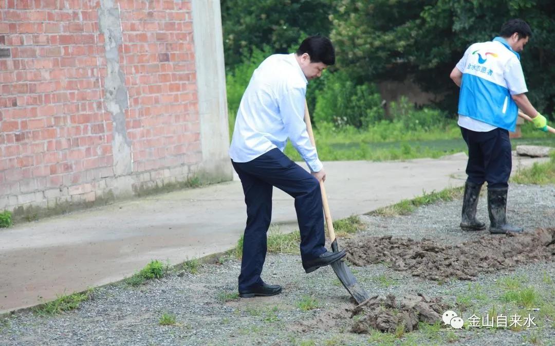 顶着夏季闷热的天气,冒着时不时的阵雨,16位志愿者铲土挖沟,挥镐除乱石,脸颊上豆大的汗珠伴随着雨水不停地往下掉,衣服早已湿透。截止下午4点,在大家的齐心协力下,奋战7个多小时,完成了部队内部增容改造工作,在夏季高峰用水来临之际,解决了部队的用水问题。