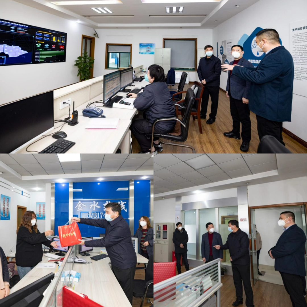 金虎辞旧岁,玉兔踏春来。1月22日,区水务局党组书记、局长赵云,集团党委书记、新金山投控集团、城投集团董事长庄健率相关部室负责人前来我司看望慰问春节期间坚守在一线的供水职工。公司党政负责人陪同慰问。