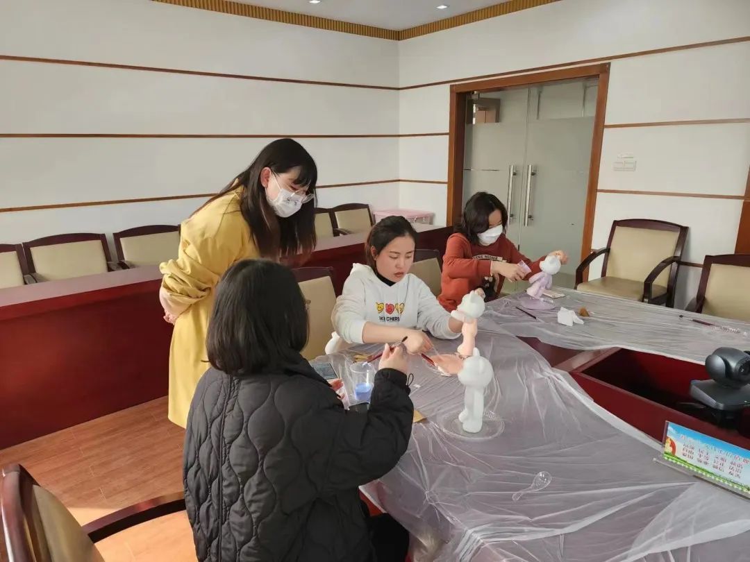 3月7日下午,工会举办流体熊DIY活动,听完老师讲解的颜料使用方法和注意事项之后,女职工们挑选自己喜欢的颜色为纯白的熊装扮上独一无二的色彩。