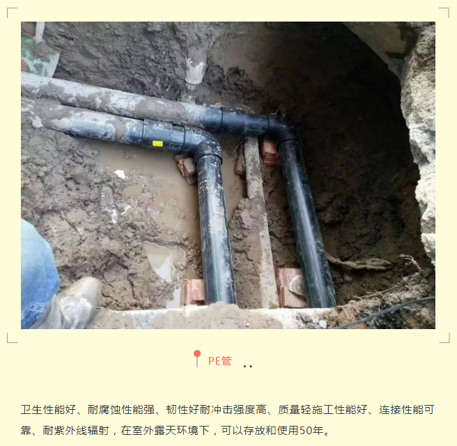 2016年,水源切换到金泽水库,目前,日供水能力40万立方米,公司日供水量约20.4万立方米。一水厂的建立不仅集约化供水能力达到40万吨,正式覆盖到全区80多万常住人口,制水工艺也大幅提升,在常规水处理工艺基础上进行了深度处理工艺改造,通过深度处理的活性炭滤池,碳的吸附和生物降解,有效降低水体当中的有机物和致嗅物。金山区在全市范围内率先完成制水厂深度处理项目,为上海市生活饮用水地方标准的实施夯实了基础。 05管材的变化 以前,管道多采用水泥管、PVC管和铸铁管,水泥管自重大,质地硬而脆,怕碰撞,接口易渗漏;PVC管材受冲击易脆裂,有开裂危险,耐低温差,膨胀系数较大,耐老化性差;铸铁管自重大,管身质地较脆,易受力而断裂,且填充物工艺老旧,随着管材的发展早已淘汰。 旧管材 而现在使用的钢管、球墨管和PE管等已经成为目前市政管网的主要的管材,他们具有以前老旧管材不具有的优点。 六十年来,公司始终关注自来水管道建设和维护,确保城市供水系统的正常运行和居民饮用水的安全和卫生。 2022年,公司年供水量约7,686万立方米,年售水量约6,213万立方米,口径在75mm以上管网长度约为1,602公里。供水量占全区73%。从建设时的水塔、老式增压泵、水泥管等到如今大型水厂和智能化水务系统并驾齐驱,金山自来水公司从无到有、由小到大,发展为拥有23.7万户用户群体的国有企业,用“水落归槽的担当精神”“水乳交融的团结精神”“水润万物的服务精神”“水滴石穿的拼搏精神”“水清如镜的求实精神”走出了一条特色鲜明、优质高效的国有企业改革发展之路。成绩的背后承载着无尽的责任和担当,奋进突围的过往,记载着公司砥砺前行的铿锵步伐。
