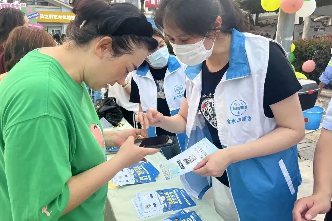 活动现场,公司青年志愿者陆霞、薛文敏、包添笑、华玲、宣轩通过设置咨询台、摆放展板、发放宣传单等方式,大力推行“互联网+供水服务”智慧新模式,向辖区群众宣传网上营业厅的功能和便利度。
