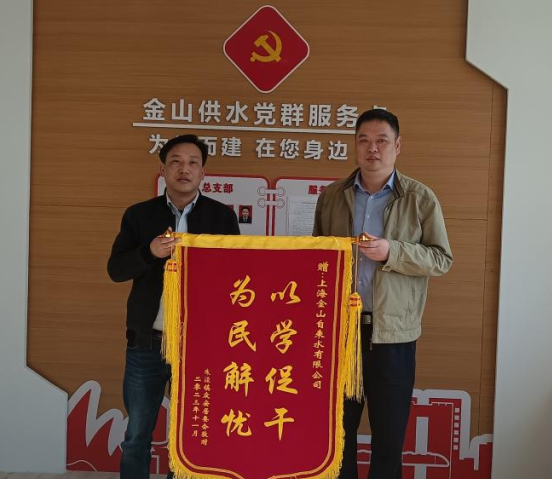 “金杯银杯”不如老百姓的口碑。鲜红的锦旗不仅代表了用户的一份心意,更是对公司供水服务工作的肯定。金山自来水公司将继续结合学习贯彻习近平新时代中国特色社会主义思想主题教育工作,精准聚焦群众需求,用情用心用力将群众的“关键小事”当成“民生大事”,真正做到有事必议,有行必果,让群众有更多、更直接、更实在的获得感、幸福感,为公司成立60周年增光添彩。