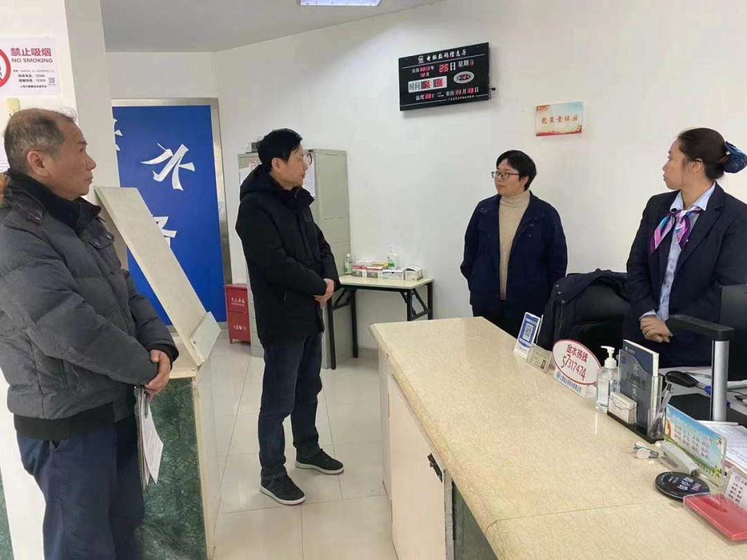 公司党总支书记陈碗仲带队前往枫泾分公司、枫泾泵站及朱泾分公司开展安全检查,期间详细了解各营业窗口近期供水服务保障情况,他指出各部门要严格按照习近平总书记关于安全生产重要论述相关精神,严守安全生产底线的同时,要把用户的用水需求时时放在心上,党员同志要发挥先锋模范作用,冲锋在前确保安全优质供水。
