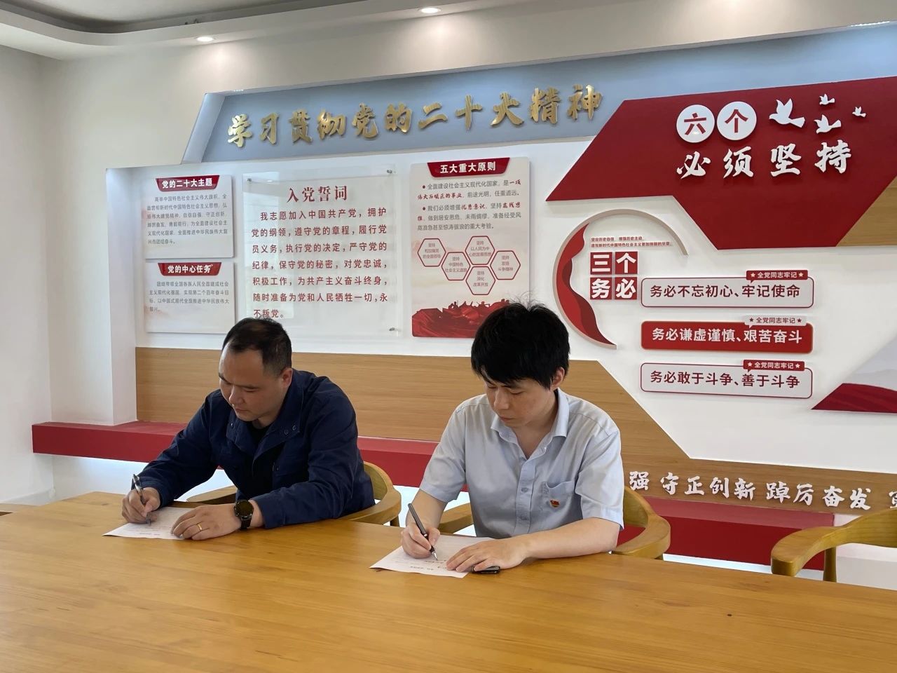 为帮助新入职党员迈好供水职业生涯“第一步”,上好“归家”第一课,5月29日上午,公司纪检联络员组织2名供水新党员书写党员承诺清单、诵读企业规章制度中党建管理有关规定,党员们表示会努力提升自身道德素养和廉洁从业素质,树立正确的人生观、价值观和利益观,忠诚干净担当,结合岗位工作认真学习业务知识和技能,力争在业务工作和廉洁从业两方面齐头并进,为公司高质量发展注入新的活力。