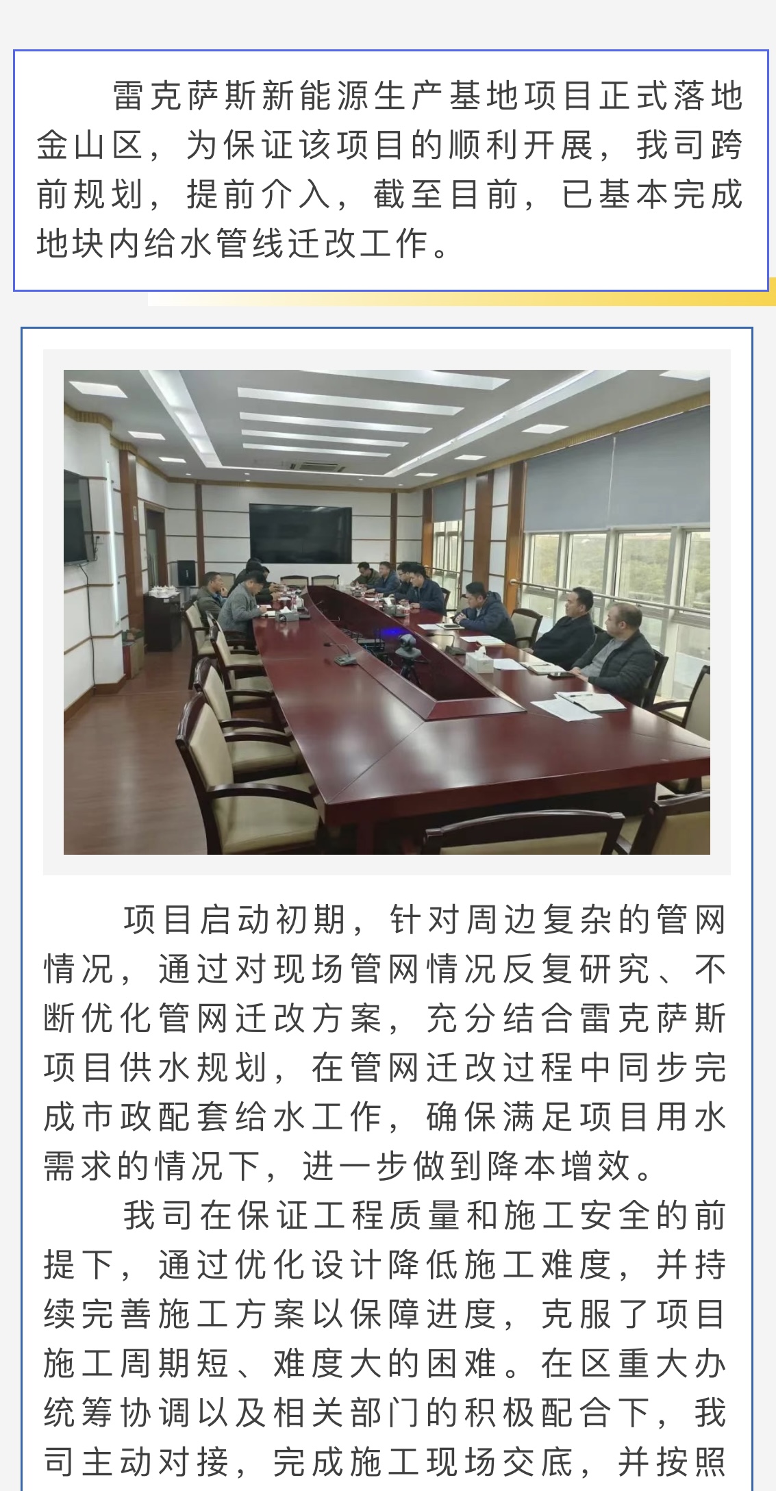 夯实供水基础建设 助力雷克萨斯项目有序推进