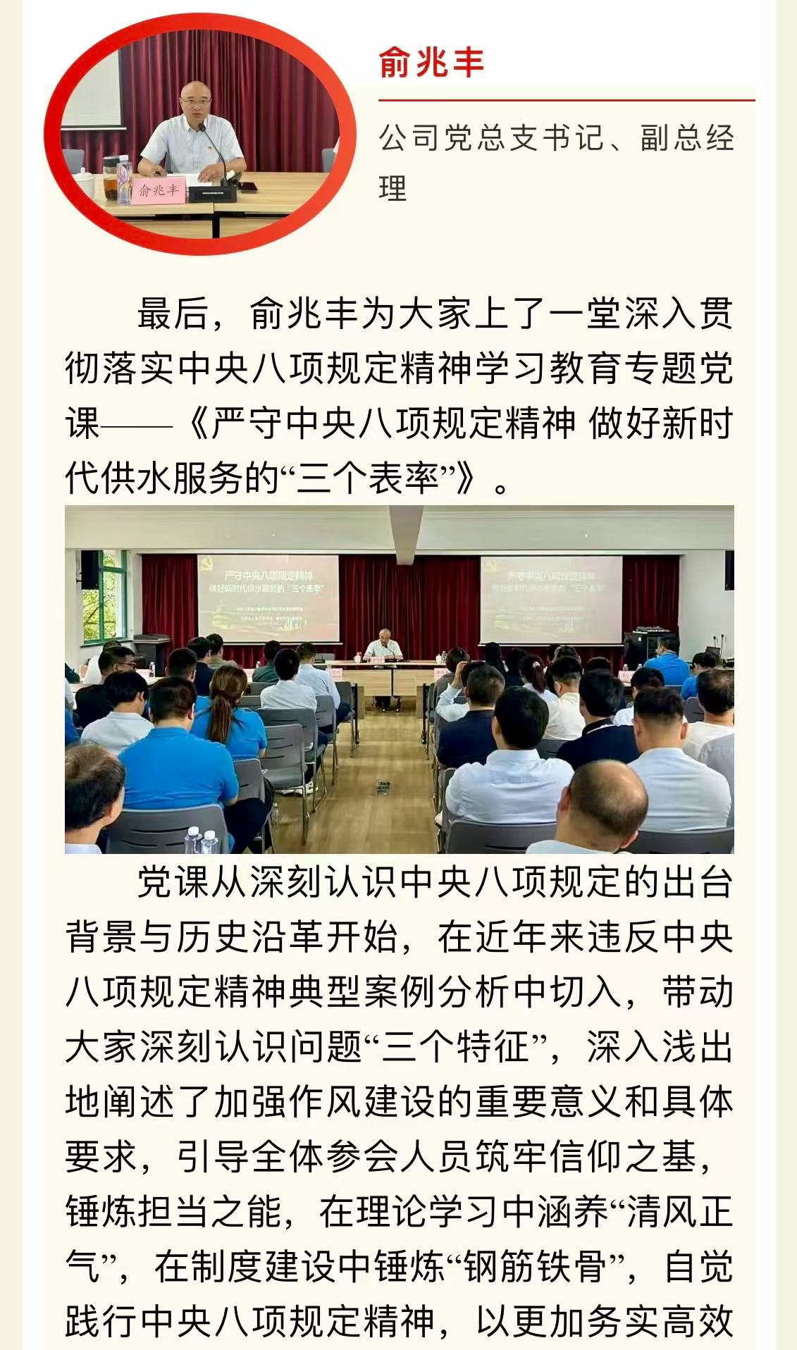 公司党总支召开深入贯彻中央八项规定精神学习教育警示专题会和专题党课学习会