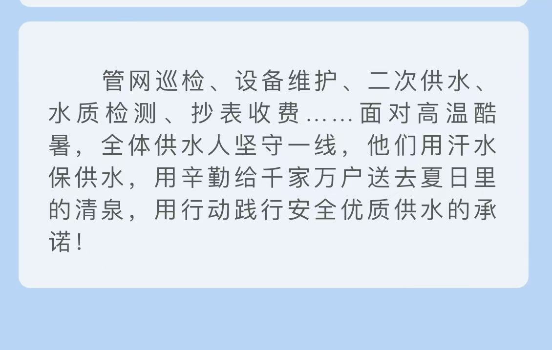 迎高温、战酷暑,坚守一线保障民生用水