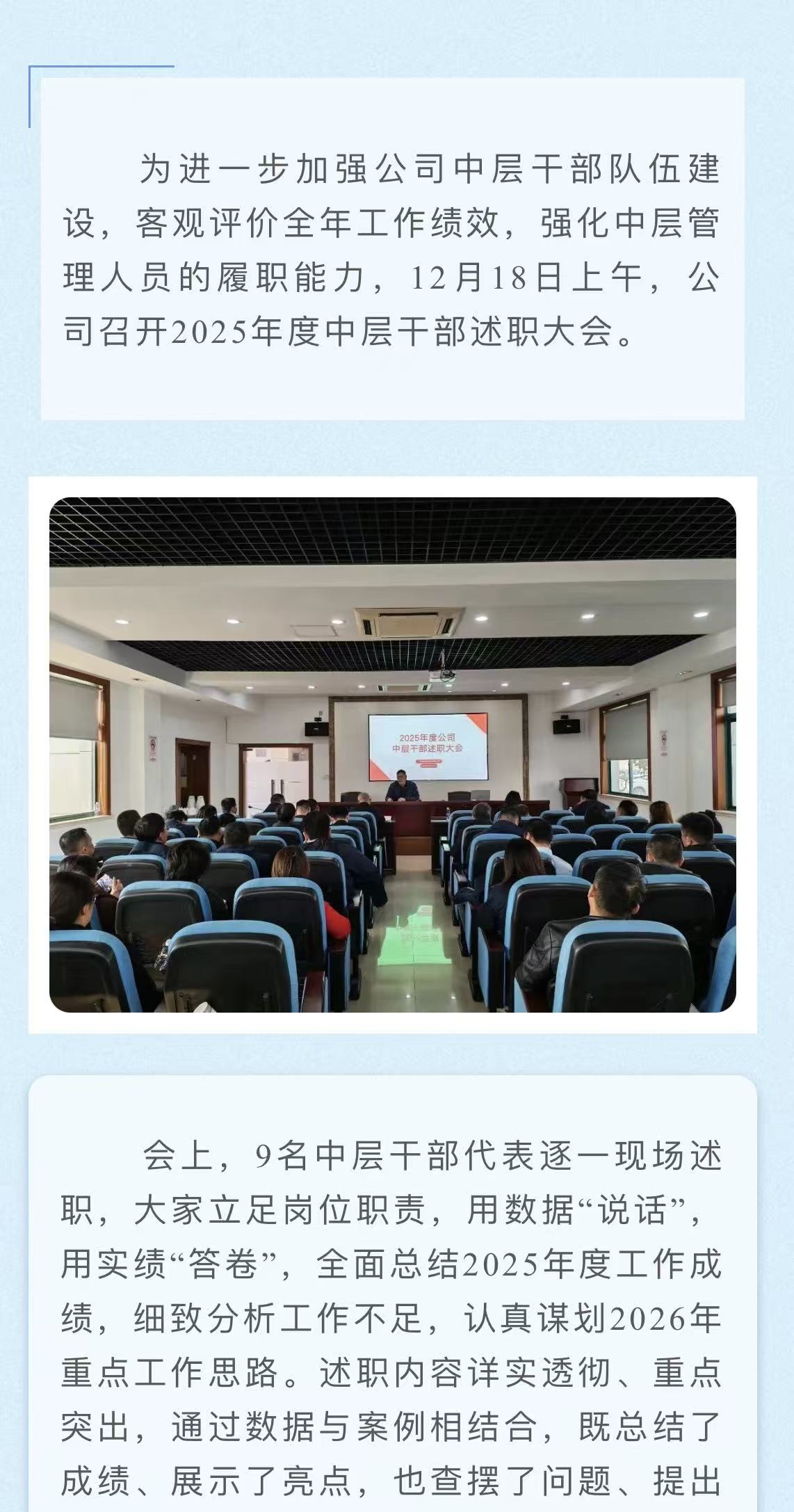 述成绩,谋新篇!公司召开2025年度中层干部述职会