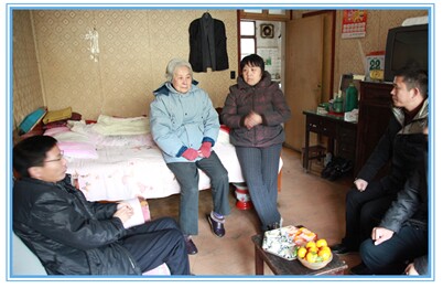 剪影二:公司党总支书记陶忠根陪同区水务局相关人员看望已故离休干部张杰同志的遗孀,送上慰问金,并祝愿其在新的一年中身体健康,安享晚年。