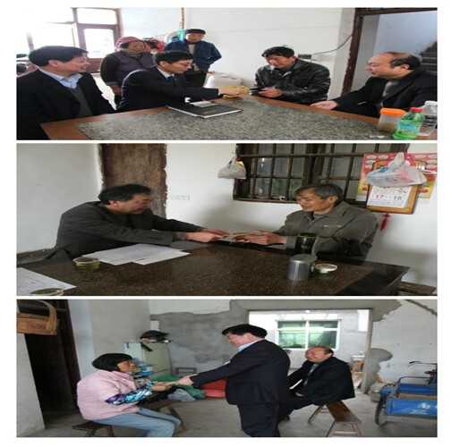 为深入贯彻“加强作风建设,密切联系群众”八项规定,结合区委新一轮“双百结对”活动要求,公司党政班子积极参与“千名机关走乡村、访农户、结亲情”活动,3月18日,公司党政班子全体成员与大茫村五家帮困结对户开展帮困慰问活动。大茫村书记主任钟孝铭等一行陪同。