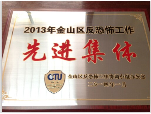 近日,公司荣获2013年金山区反恐怖工作先进集体。