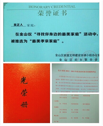 吴正人家庭被评为金山区“最美孝亲家庭”