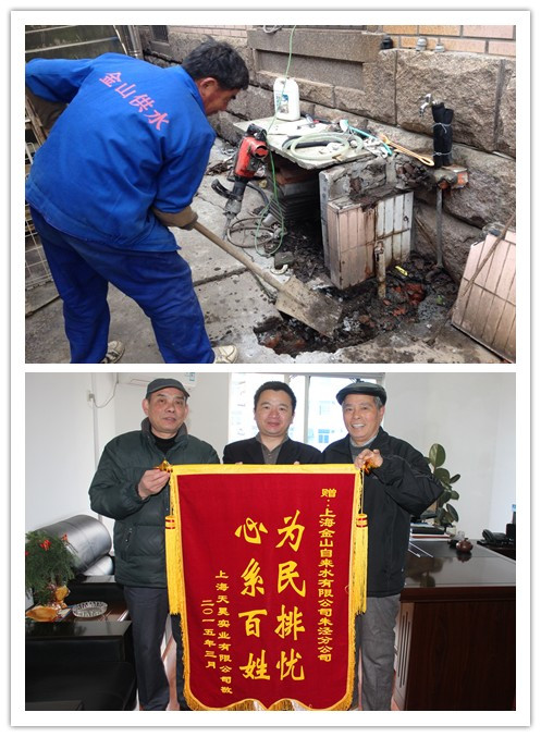 据悉,上海天昊空调有限公司发现其内部管道存在漏水现象,但无法自行解决,随即向朱泾分公司求助。根据有关规定,内部管道的维修不属于我公司服务范围,但本着急用户所急、想用户所想的服务理念,朱泾分公司主动跨前一步,延伸服务,立即组织人员到现场查勘,并利用下午和夜间用水空闲时段对其内部管道进行听漏和查漏,由于该处房屋建成时间久远,内部管道走向无人知晓,且管网陈旧,为切实解决用户用水难题,朱泾分公司利用双休日时间帮助用户重新翻建内部管道,并优化管网布局,在解决漏水问题的同时改善了用水质量,得到了用户的交口称赞。
