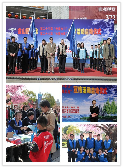 3月22日是第二十三届“世界水日”,3月22日至28日是第二十八届“中国水周”。为倡导珍惜、节约、保护水资源的生活理念,呼吁全社会共同参与水生态建设,由区水务局主办的“世界水日、中国水周”主题纪念活动在金山百联广场隆重举行。我公司团员青年积极响应号召,参与了此次活动。