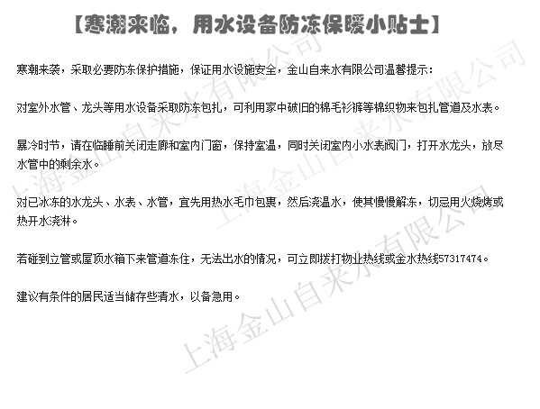 寒潮来临,用水设备防冻保暖小贴士