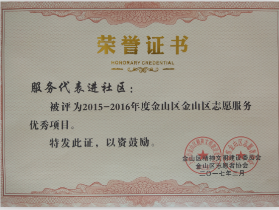 “服务代表进社区”荣获金山区优秀志愿者服务项目