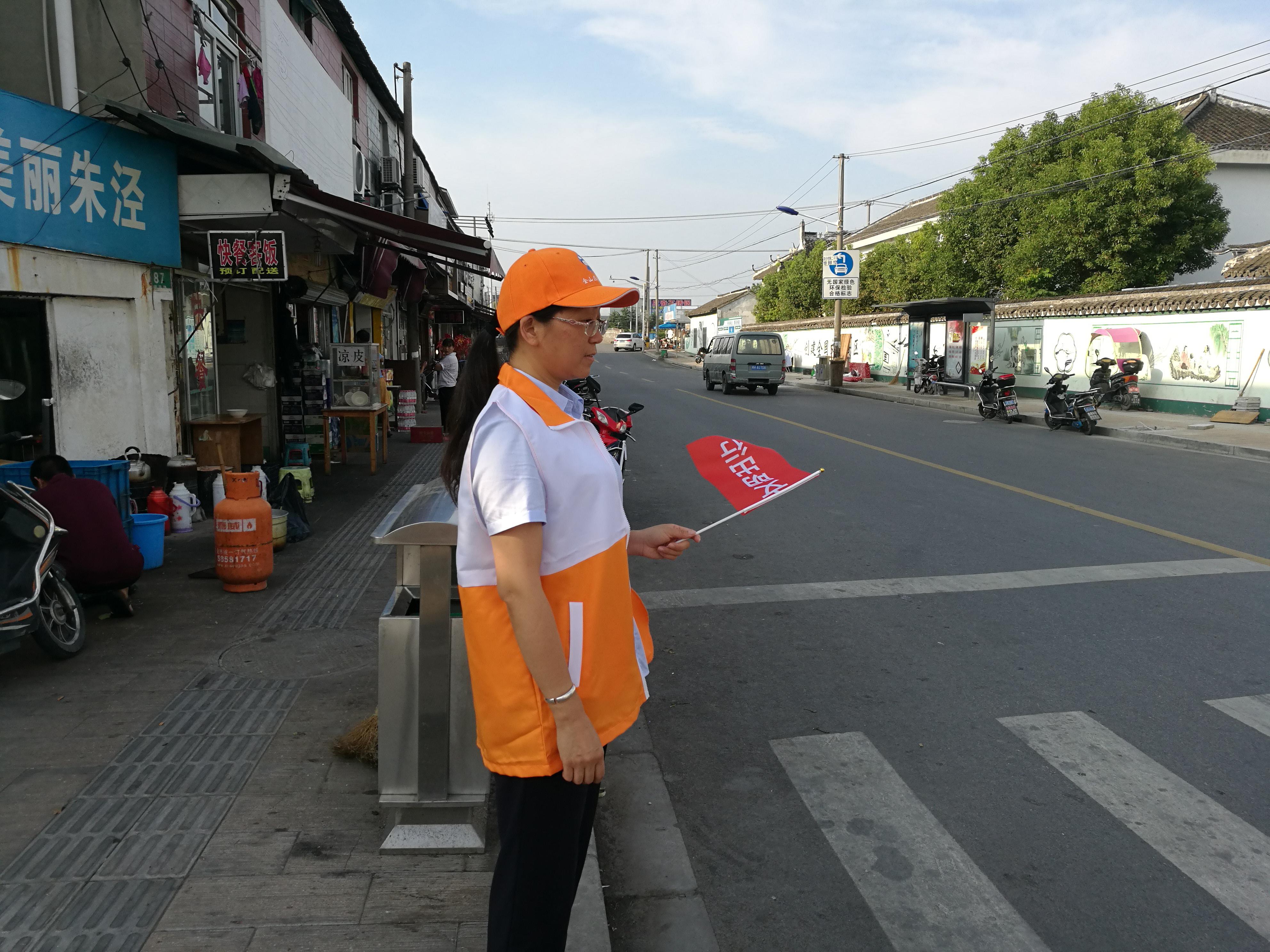 为迎接上海市国际进口博览会,创建全国文明城区,展现上海城市魅力,朱泾分公司党团员志愿者在领导带领下来到新农浦银路贸易路口、浦银路新洲路口认真开展交通志愿者活动,协助辅警维护良好交通秩序。 在活动现场,志愿者们利用下班休息时间身穿橙色马甲,头戴小橙帽,手里挥动着交通小红旗,提醒过往行人与车辆,遵守交通法规,与文明同行。 通过开展文明交通志愿服务活动,进一步提高了市民的安全出行意识,充分展示了为创建文明城区,以实际行动传递着“文明交通从我做起”的正能量。