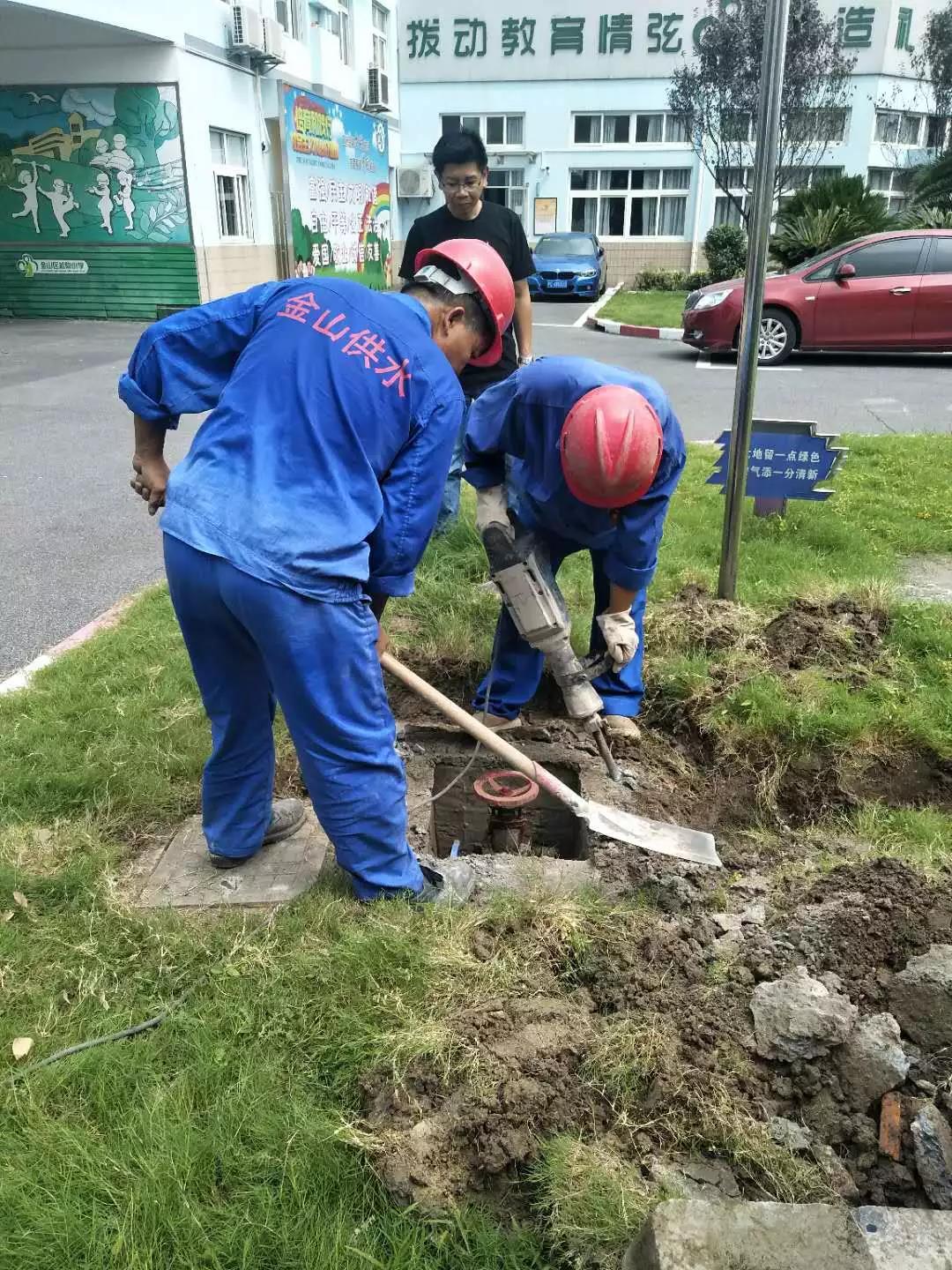 为践行志愿精神,发扬国企社会责任感,我司工作人员不畏酷暑将原有水表升高,更换表后阀门,抢修完成后,打开消火栓排出抢修时进入管道的污水,最后砌好表箱。所有的工作在我司工作人员手中有条不紊地完成了。虽然外线师傅们一身汗水,疲惫不堪,但看到孩子们能安全、放心地用上干净的自来水,都开心地笑了。