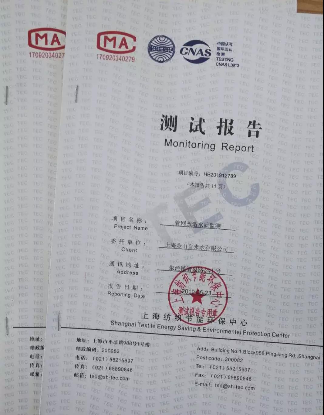 管道冲洗环节完成后,项目部将水质检测工作同步跟进,共累计完成常规7项水质检测40余次,第三方49项水质检测3次,符合国家水质检测标准,为朱泾镇区企业和居民的生产生活提供放心水。