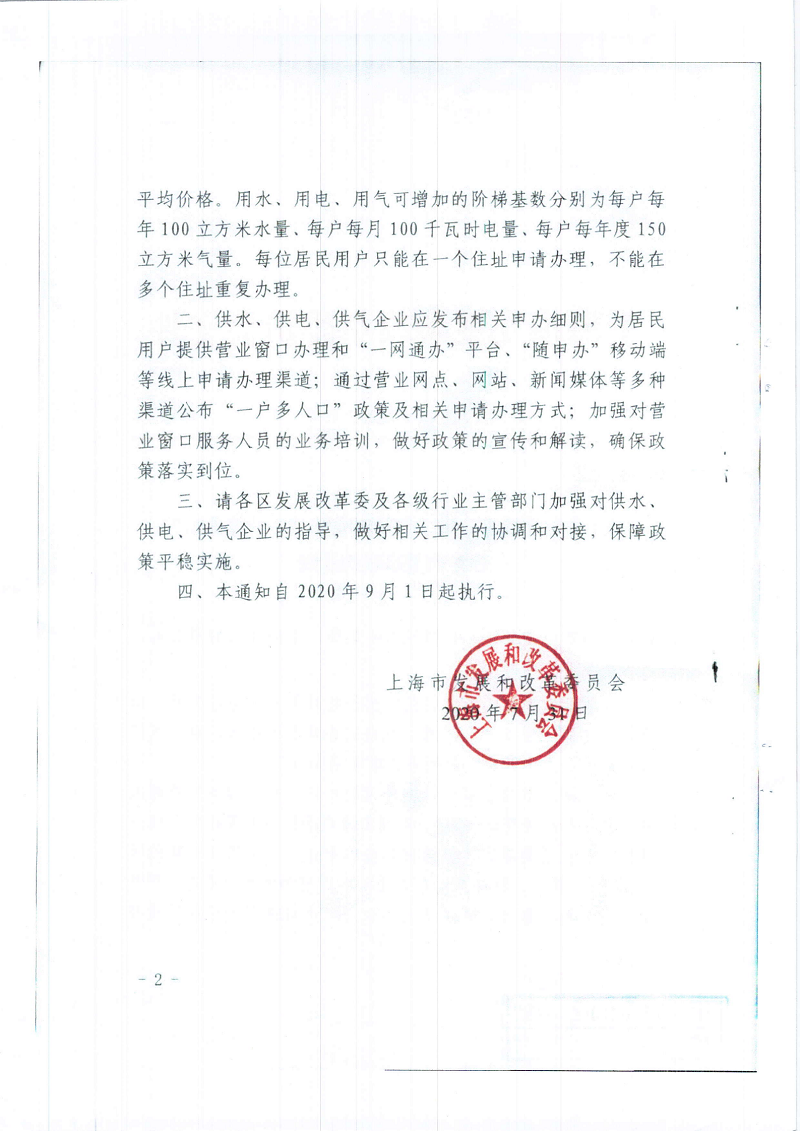沪发改价管【2020】19号关于完善居民水、电、气阶梯价格“一户多人口”政策有关事项的通知